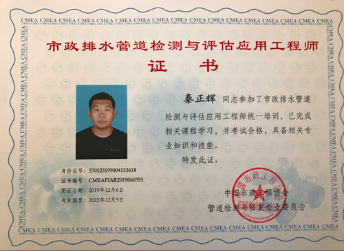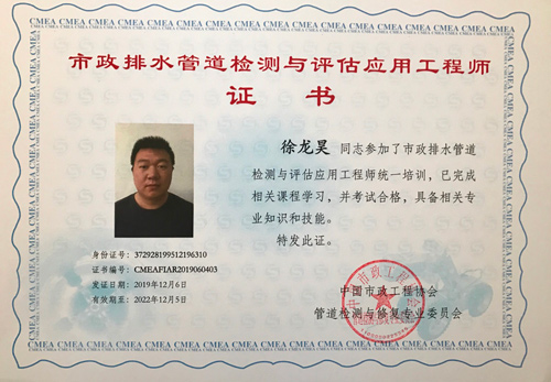 “2019年第三期市政排水管道檢測與評估應用工程師培訓班”,于12月5日-6日在浙江湖州順利舉行。本次培訓由中國市政工程協會管道檢測與修復專業委員會主辦,北京建研住工建筑工程集團有限公司和上海派濮會展服務中心承辦,青島鑫亞環境科技有限公司、武漢特瑞升電子科技有限公司、武漢新光專用汽車制造有限公司、武漢中儀物聯技術股份有限公司、深圳市博銘維智能科技有限公司、深圳市施羅德工業集團有限公司共同協辦。