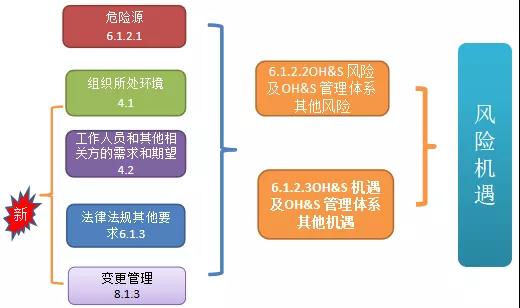 1、在6.1.1總則中提出:在其策劃過程,組織應確定并評價與組織變更、過程變更或體系變更有關的、影響OH&S管理體系預期結果的風險和機遇。對于計劃的變更(永久性的或臨時性的),上述評價應在變更實施前完成(見 8.1.3)