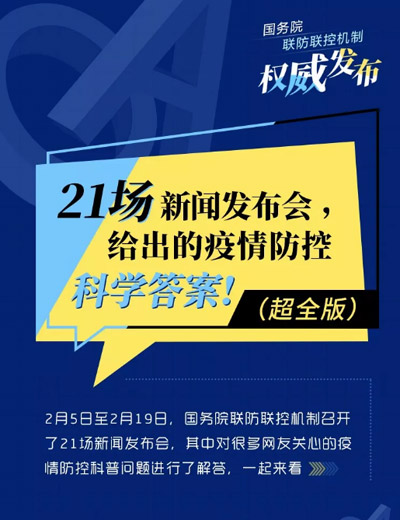 2月5日至2月19日,國(guó)務(wù)院聯(lián)防聯(lián)控機(jī)制召開(kāi)了21場(chǎng)新聞發(fā)布會(huì),其中對(duì)很多網(wǎng)友關(guān)心的疫情防控科普問(wèn)題進(jìn)行了解答,一起來(lái)看。