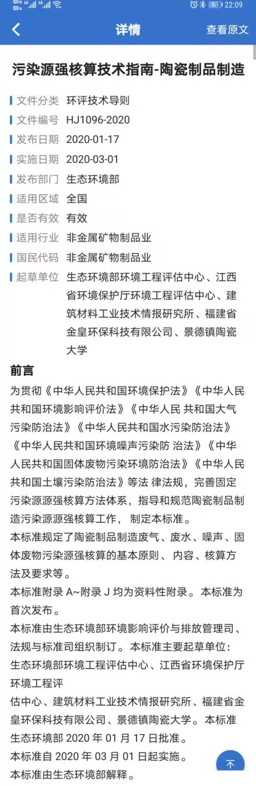 一、《污染源源強核算技術指南 陶瓷制品制造》(HJ1096-2020);